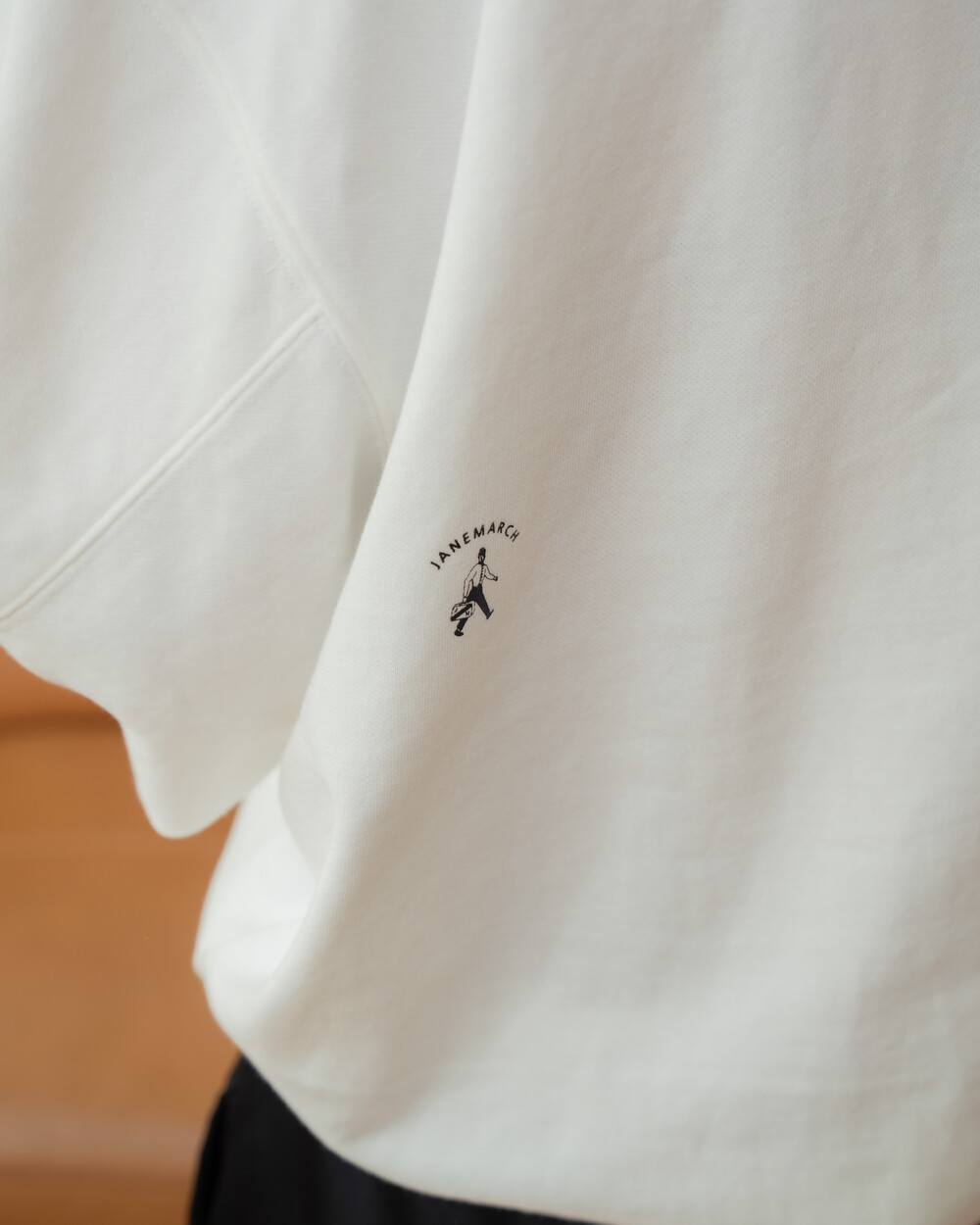 또, 스웻셔츠에서 중요한 넥라인과 견고한 박음질, 소매의 셔링으로 자연스러운 곡선미를 보이는 제인마치만의 소매라인이 완성이 됩니다. 덕분에 청바지나 새틴스커츠와도 잘어울리는 아이템입니다. 뒷면에 있는 제인마치만의 시그니처 트레벨러도 놓칠 수 없는 포인트!